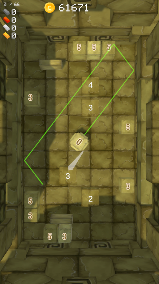 목표로 한 블럭에 쓰여진 숫자와 같아지는 순간 반투명하고 진로에 방해가 되지 않던 목표 블럭이 실페체화되며